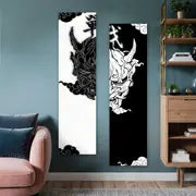 2 db Fekete-fehér Bostoni Sárkány Falikép, Hagyományos Japán Mintával | Ideális Hálószoba vagy Nappali