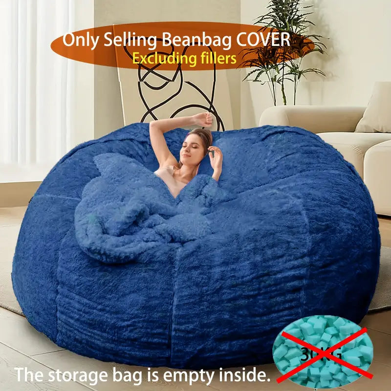 Puha és Bolyhos Műszőrme Babzsák Szék Huzat - 182.88cm, Töltet Nélkül, Gépben Mosható, Sokoldalú Nappali Dekorációhoz, Szürke és Kék
